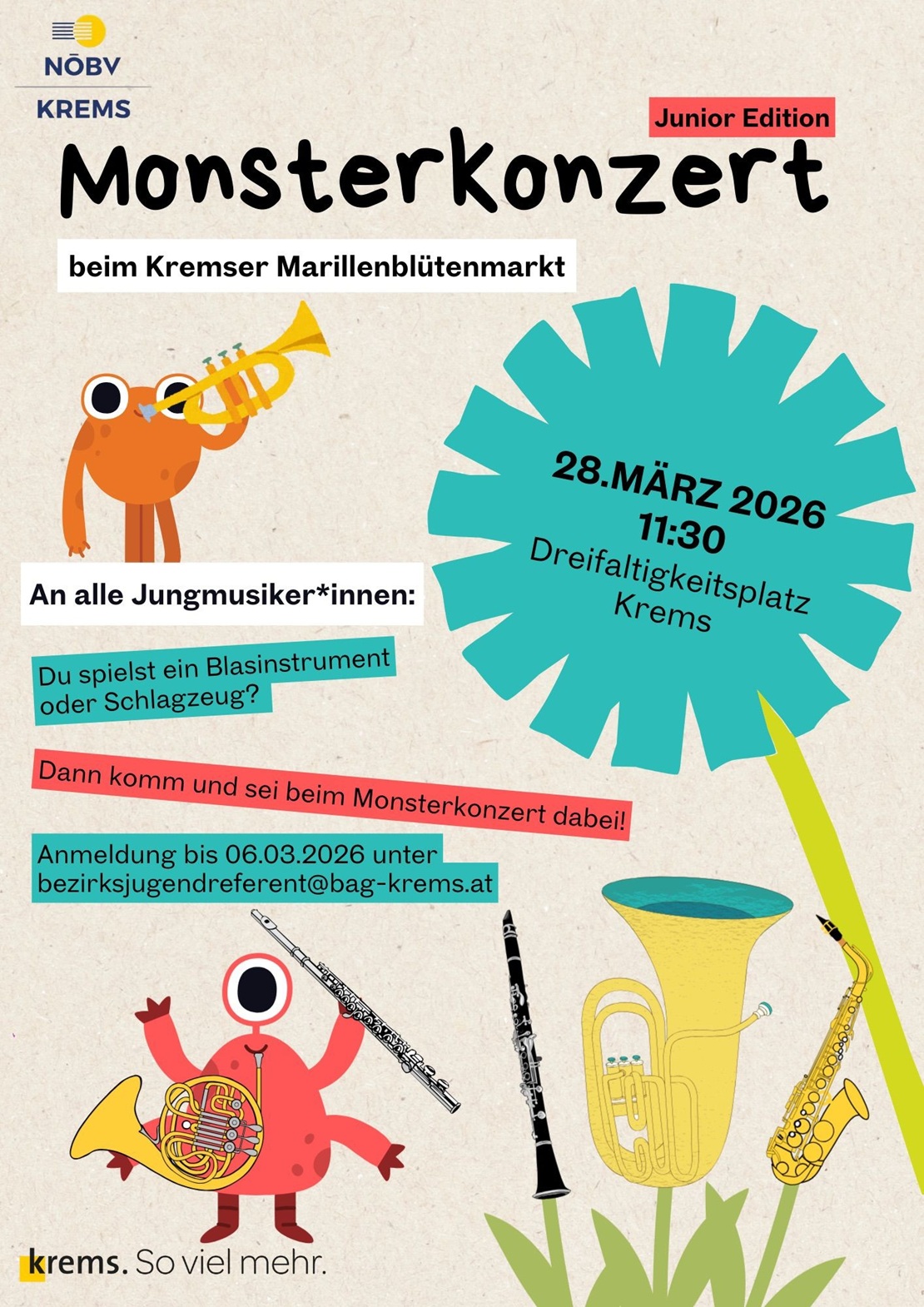 ABGESAGT - JUBL Monsterkonzert beim Kremser Marillenblütenmarkt